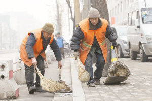 昨日14时30分许,记者来到栗中街,寻了半晌却不见踪影。提及这对环卫夫妻,附近一位扫雪的环卫工人介绍,他们老两口认真负责,“不会临阵脱逃的。”